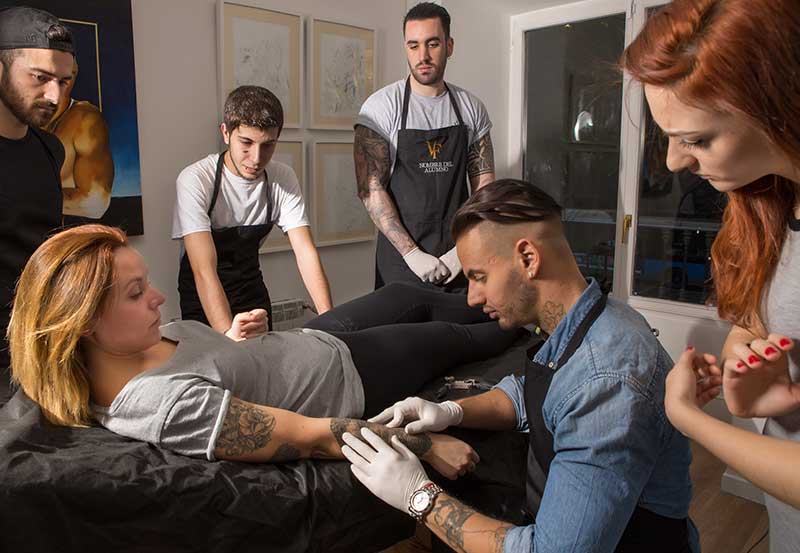 Las jornadas de prácticas permiten a cada alumno comenzar a definir su propio estilo, orientándose a la técnica o tendencia que le resulta más motivadora. Desde el retrato hasta el estilo maorí, pasando por el old school, new old school, japonés ó Realismo en cualquiera de sus vertientes, las prácticas supervisadas son el momento de alzar las alas y comenzar a plasmar sobre piel la propia forma en que cada alumno concibe este Arte.